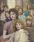 ZOLLA VENANZIO (GB 1880 - 1961 Torino) - "Allo spettacolo", 57x47 olio su cartone. Opera firmata in basso a destra e al retro con titolo. L'opera può essere confrontata con un analogo dipinto eseguito dal pittore raffigurante "Il coro di Natale", pubblicato su G.L. Marini, Il valore dei dipinti dell'Ottocento e del primo Novecento. XXIV edizione, Torino 2006/2007, pag. 816