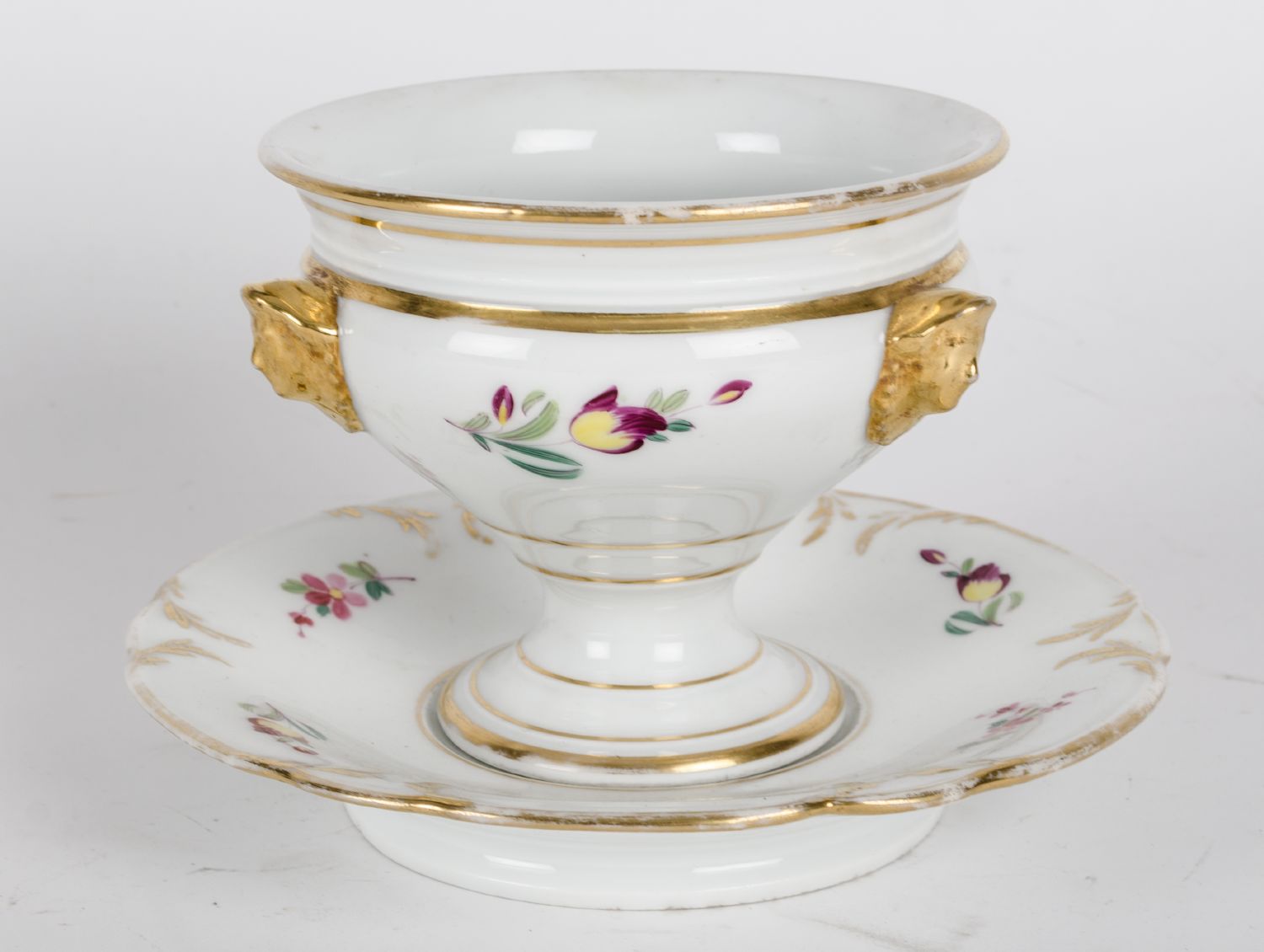 ALZATA in porcellana bianca decorata a motivo floreale con perfilo in oro. Italia XX secolo Misure: h cm 14,5