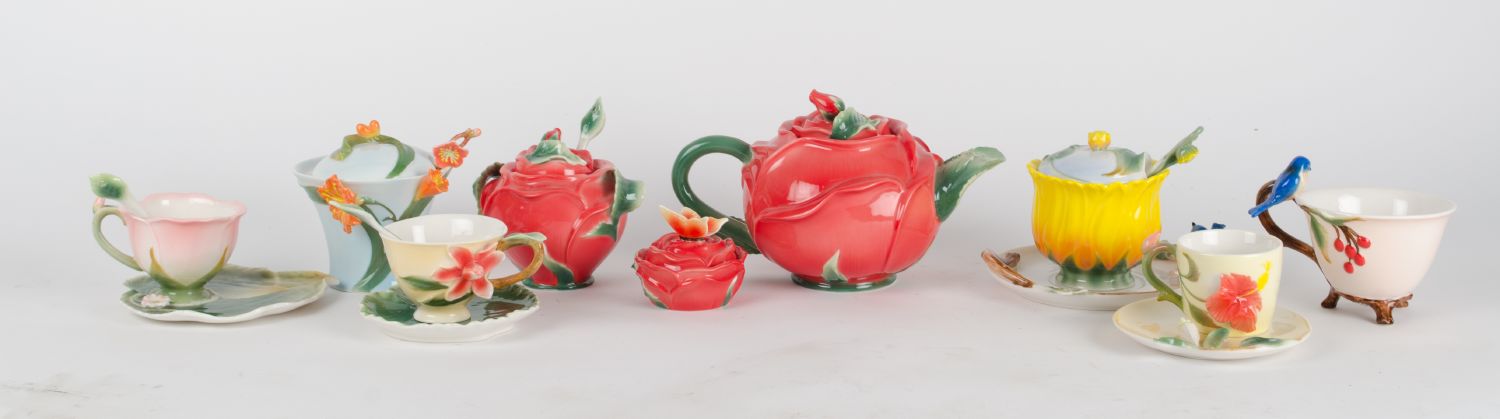 LOTTO composto da THEIERA, 4 ZUCCHERIERE e da 4 TAZZINE con piattini in porcellana decorata. XX secolo Misure: varie