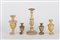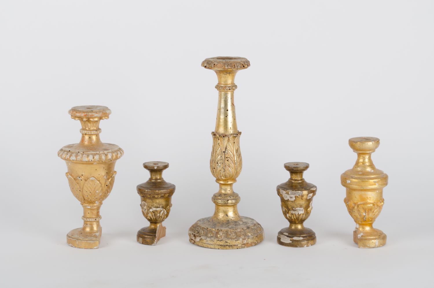 LOTTO composto da quattro PIGNE e da CANDELIERE stile Luigi XVI in legno dorato. Sicilia I meta' '800 Misure: varie