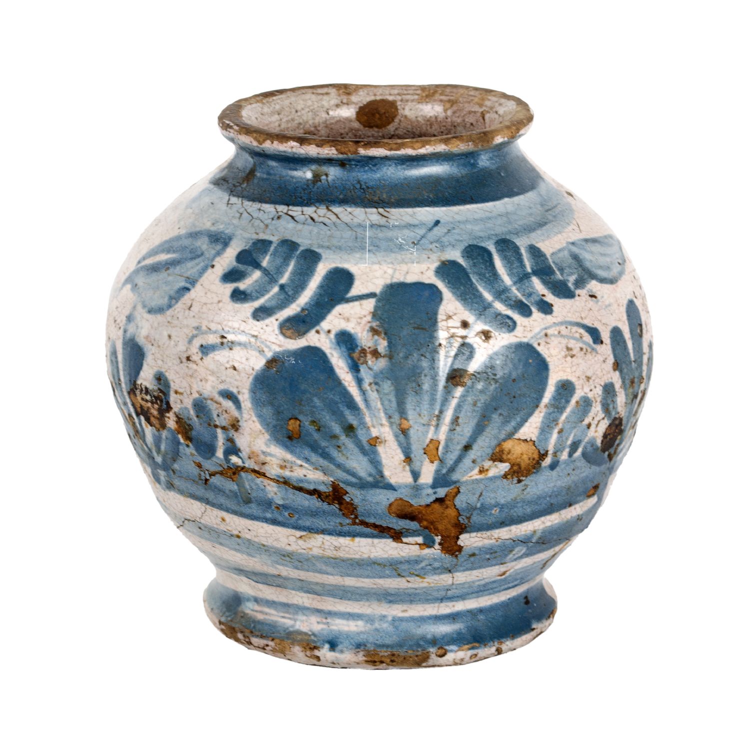 PICCOLA BOCCIA in ceramica smaltata e decorata nei toni del blu (difetti). Caltagirone XVIII secolo Misure: h cm 16,5