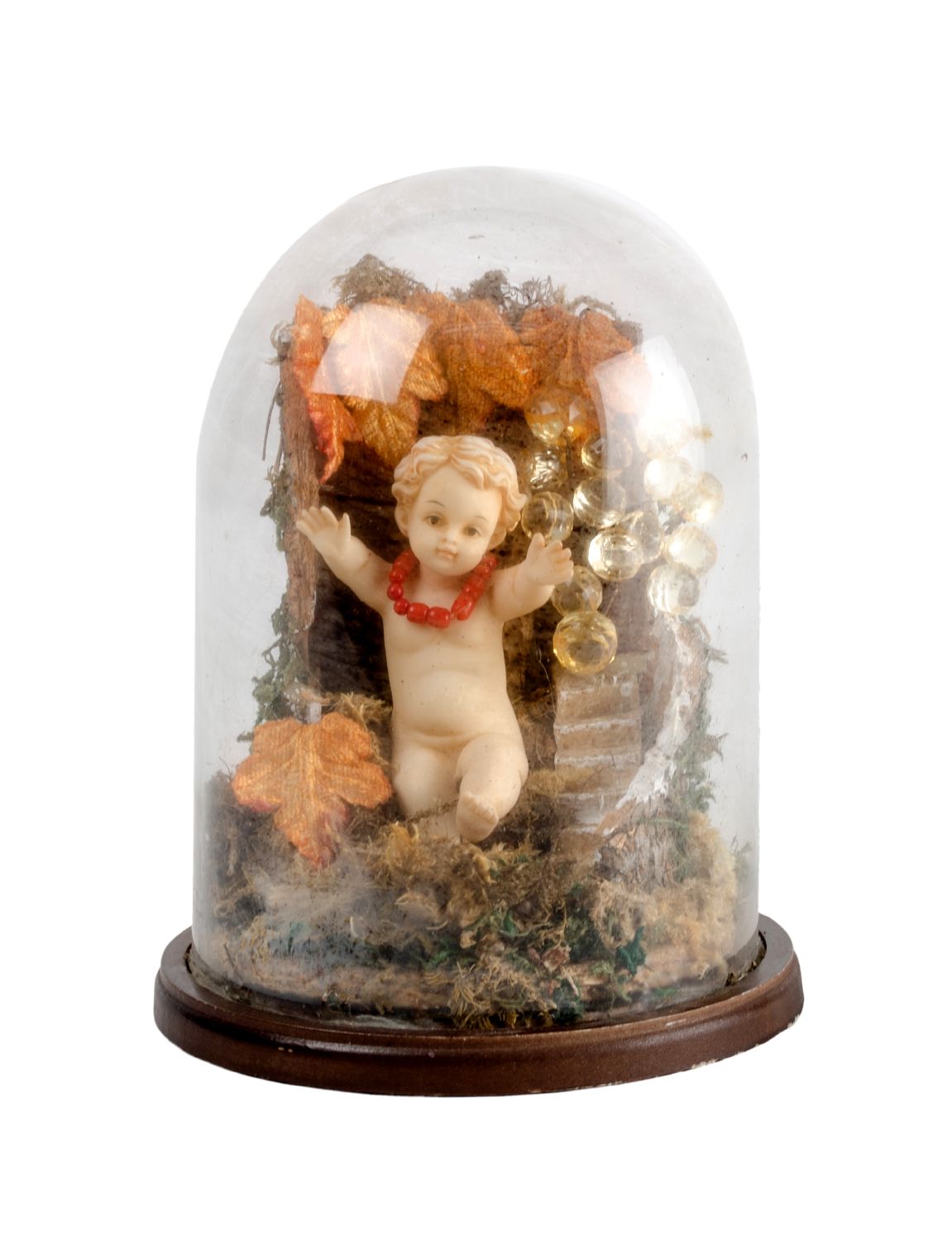 SCULTURA in cera raffigurante "Bambinello" entro campana. Sicilia XX secolo Misure: h cm 20