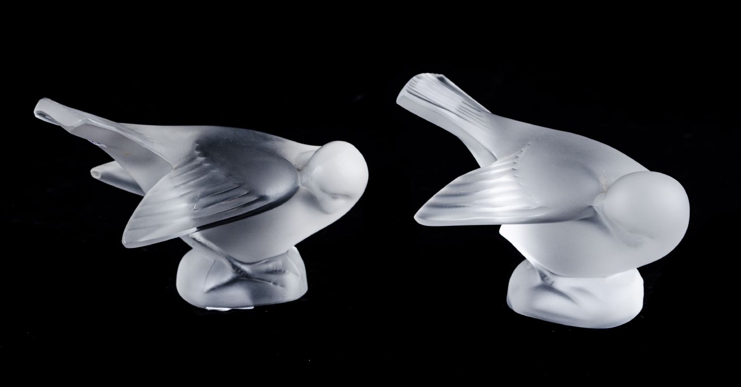 COPPIA SCULTURE in cristallo Lalique raffiguranti "colombe". XX secolo Misure: cm 12 x 7