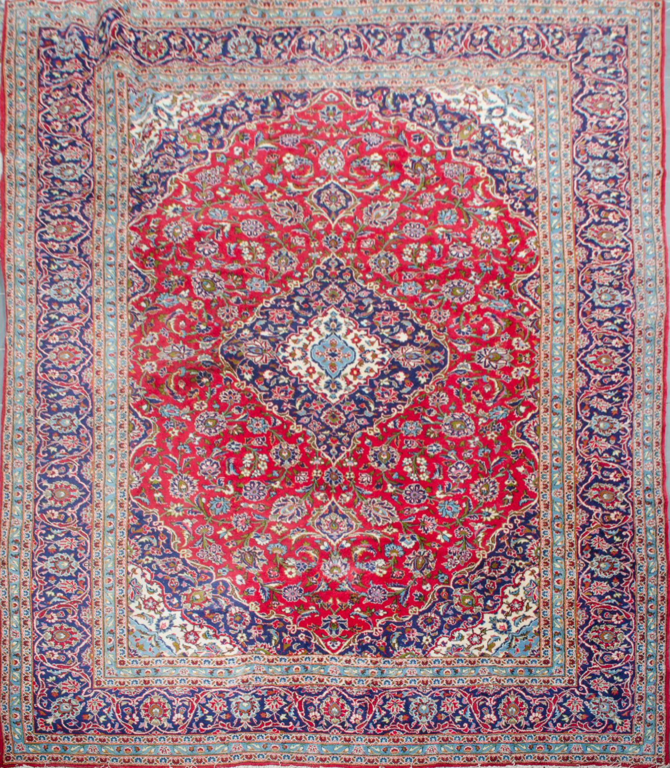 TAPPETO Keshan, trama e ordito in cotone, vello in lana. Persia XX secolo Misure: cm 420 x 300