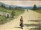 GUARLOTTI GIOVANNI (Galliate (NO) 1869 - 1954 Torino) - "Studio per paesaggio con contadina" 17/07/1935, 35x50 olio su cartone. Opera firmata e datata in basso a destra. L'opera presenta al retro, scritta a pennarello, l'autentica di E.F. Marisaldi "Questo studio è opera del mio Maestro G. Guarlotti. Elena Falco Marisaldi"