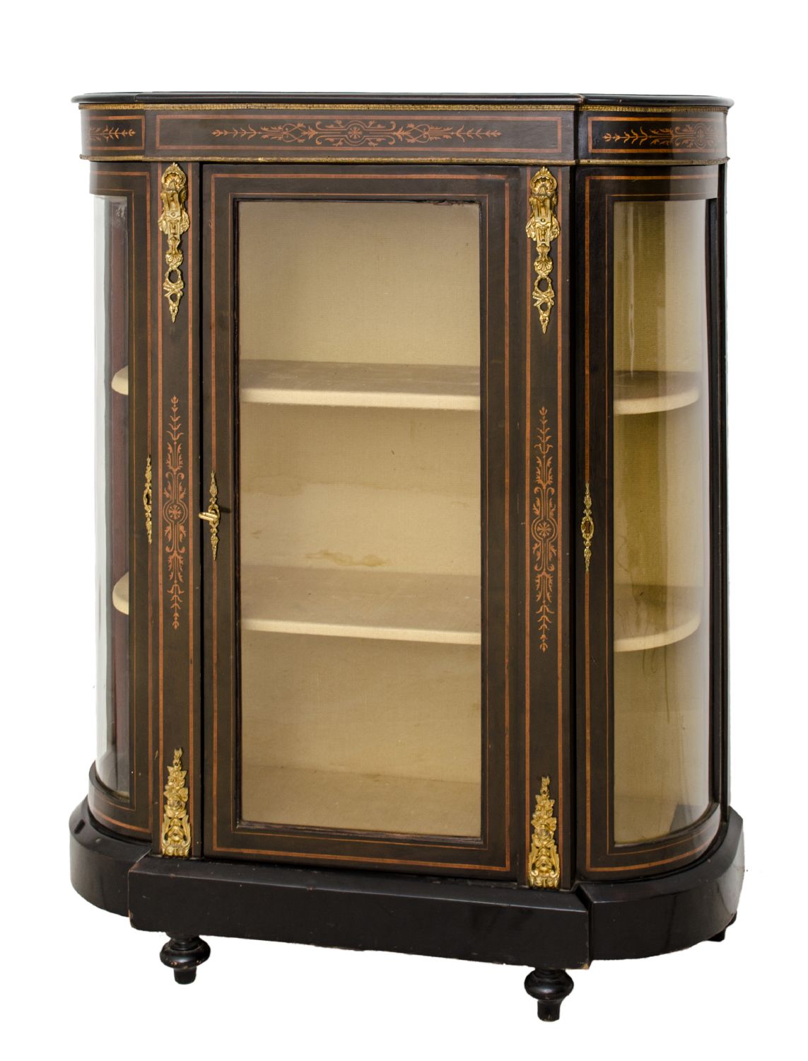 VETRINETTA bombata a tre ante in legno perfilato in bois de rose e bosso con applicazioni in bronzo. Inghilterra XIX secolo Misure: cm 88 x 37 x h 113