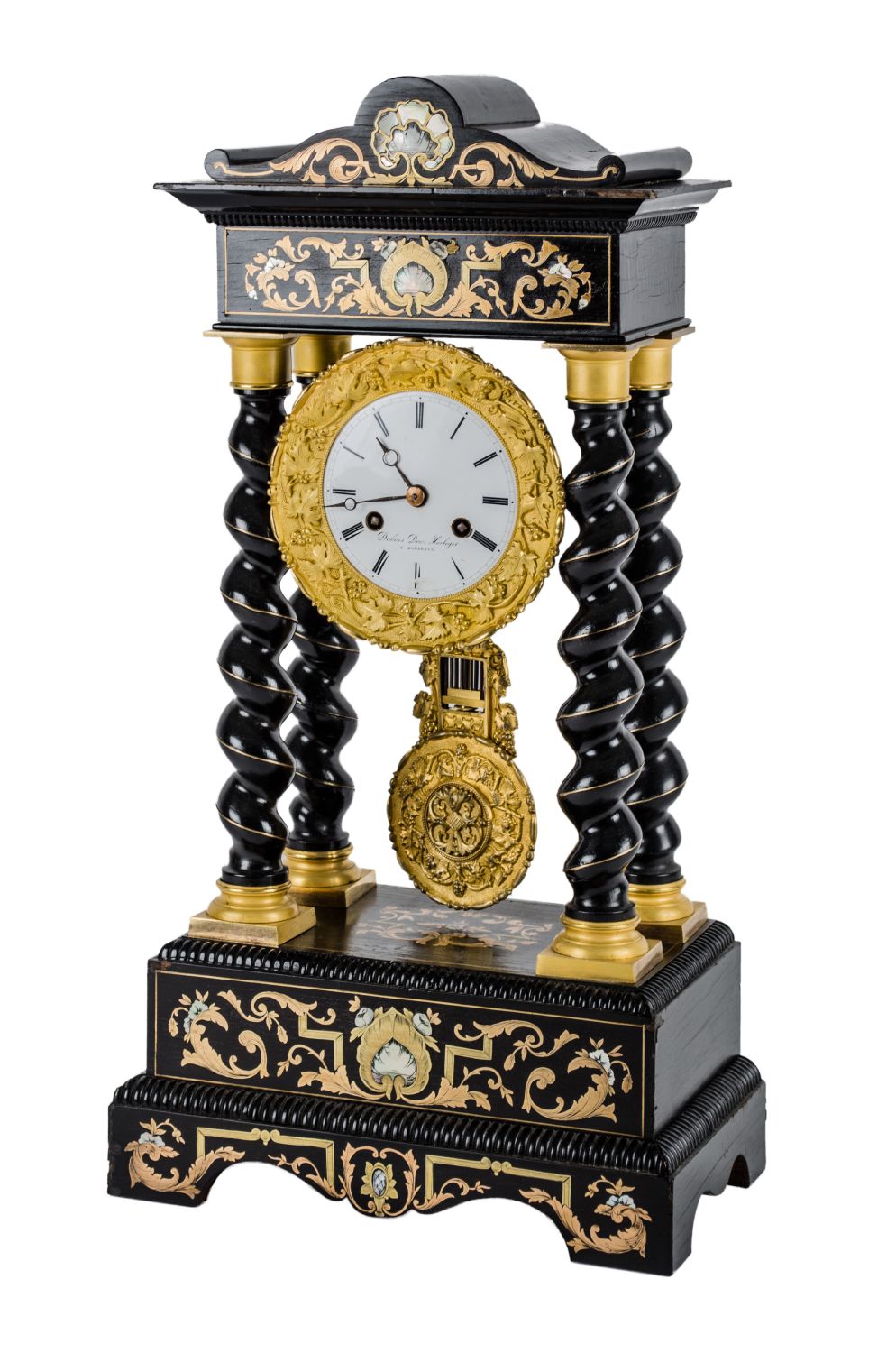 OROLOGIO Carlo X a tempietto in palissandro con guarniture in ottone dorato e...