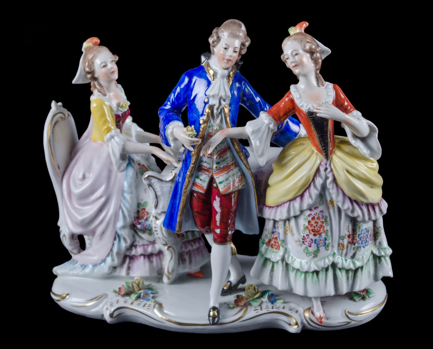 GRUPPO in porcellana Capodimonte raffigurante "scena galante". Italia XX...