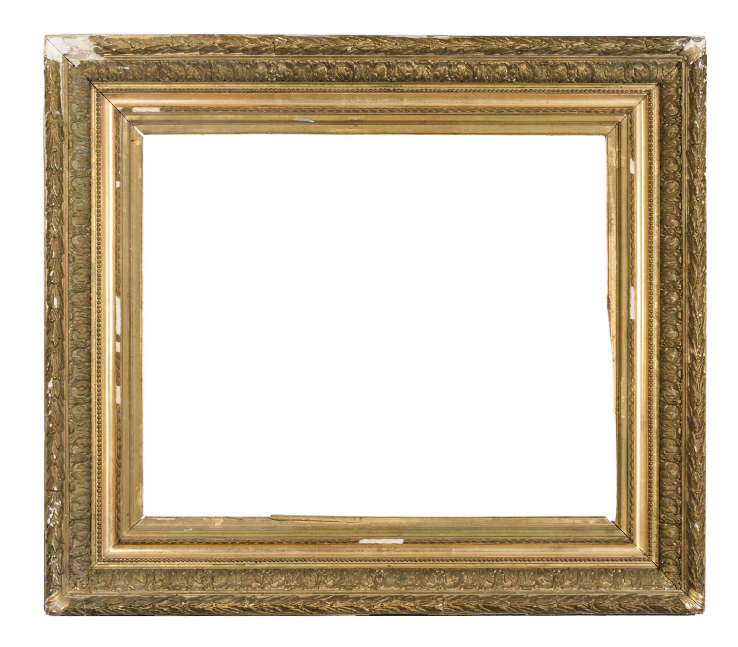 CORNICE in legno e pastiglia dorata (cm 63 x 52). Francia XIX secolo Misure: cm 85 x 76
