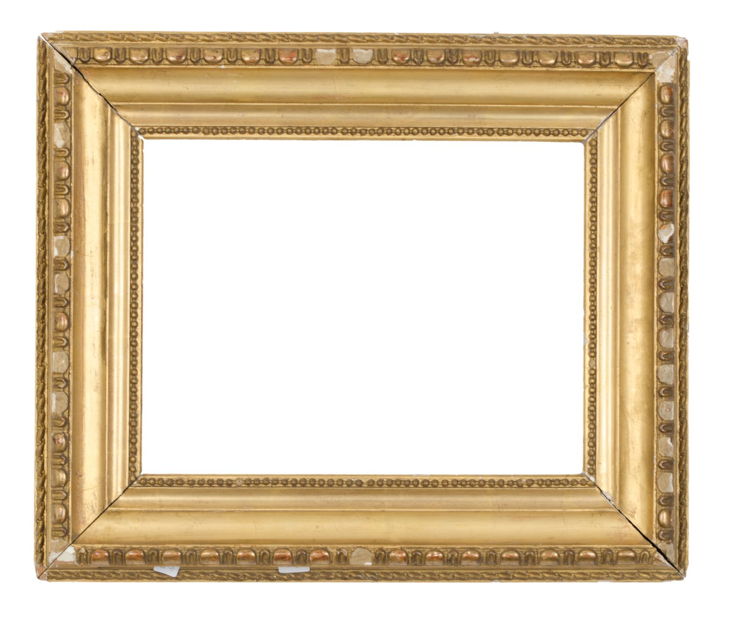 CORNICE in legno e pastiglia dorata ad oro zecchino (Cm 34,5 x 26,5). Francia XIX secolo Misure: cm 48 x 39
