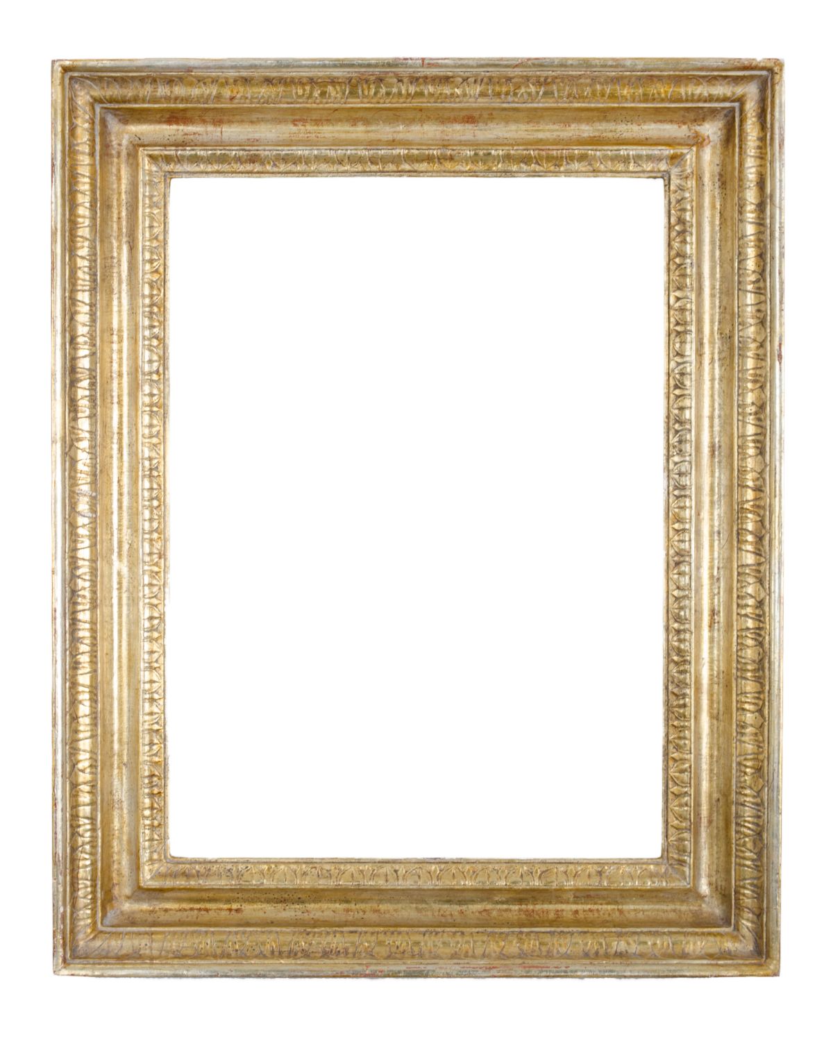 CORNICE Impero in legno dorato ad argento a mecca (cm 54 x 40). Sicilia XIX secolo Misure: cm 68 x 54