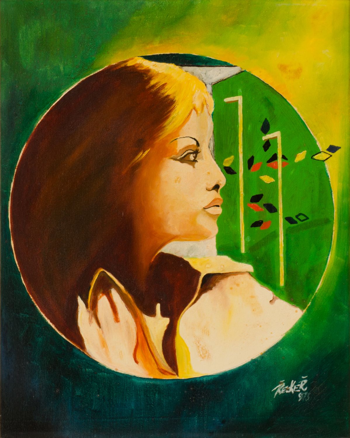 RECKEL OLIO su tela "profilo femminile". Datato 1973 Misure: cm 42 x 52