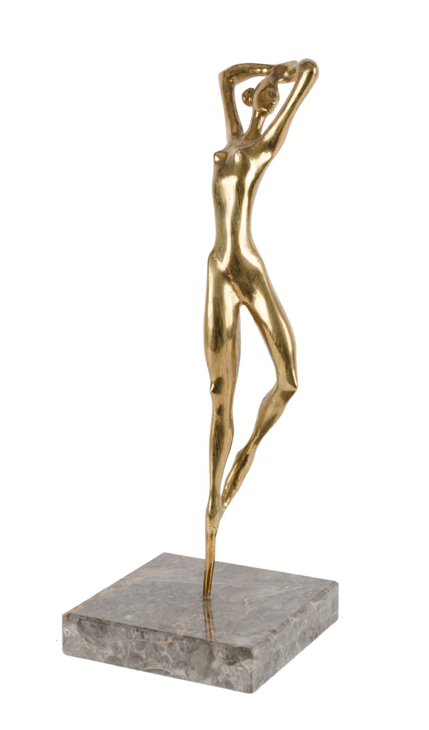 EDOARDO BELLOMO (Grotte (Ag) 1939) SCULTURA in ottone dorato "figura femminile", firmata sul retro, esemplare 4/10, base in marmo grigio (usure). Misure: h cm 54,5