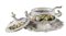 ZUPPIERA CON PIATTO E MESTOLO in ceramica dipinta a motivo floreale. XX...