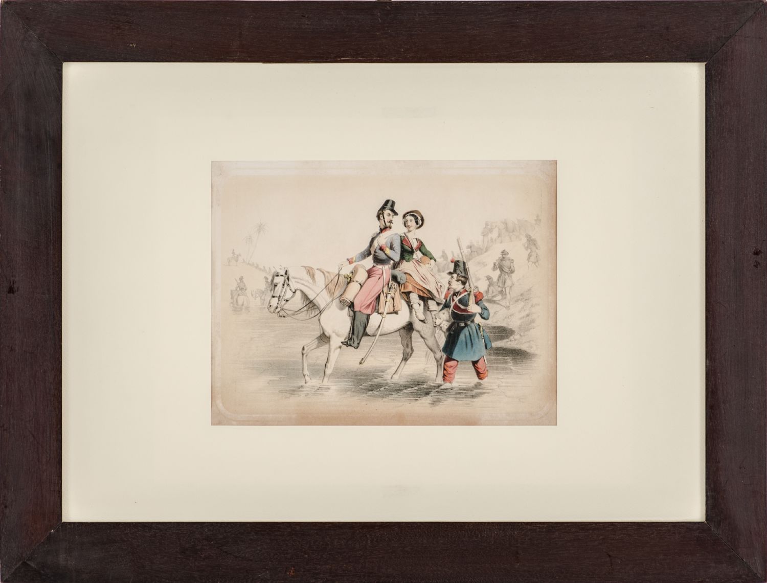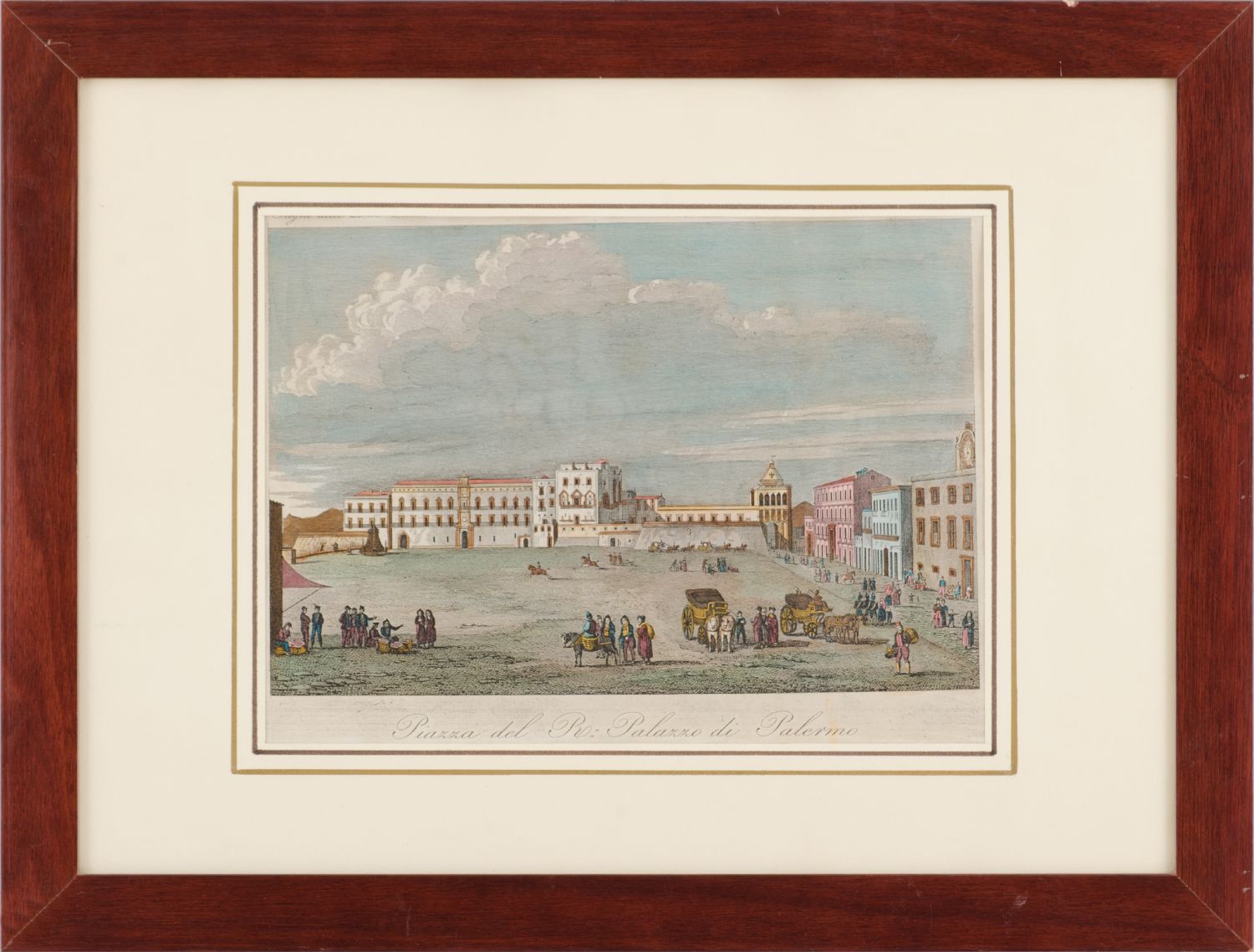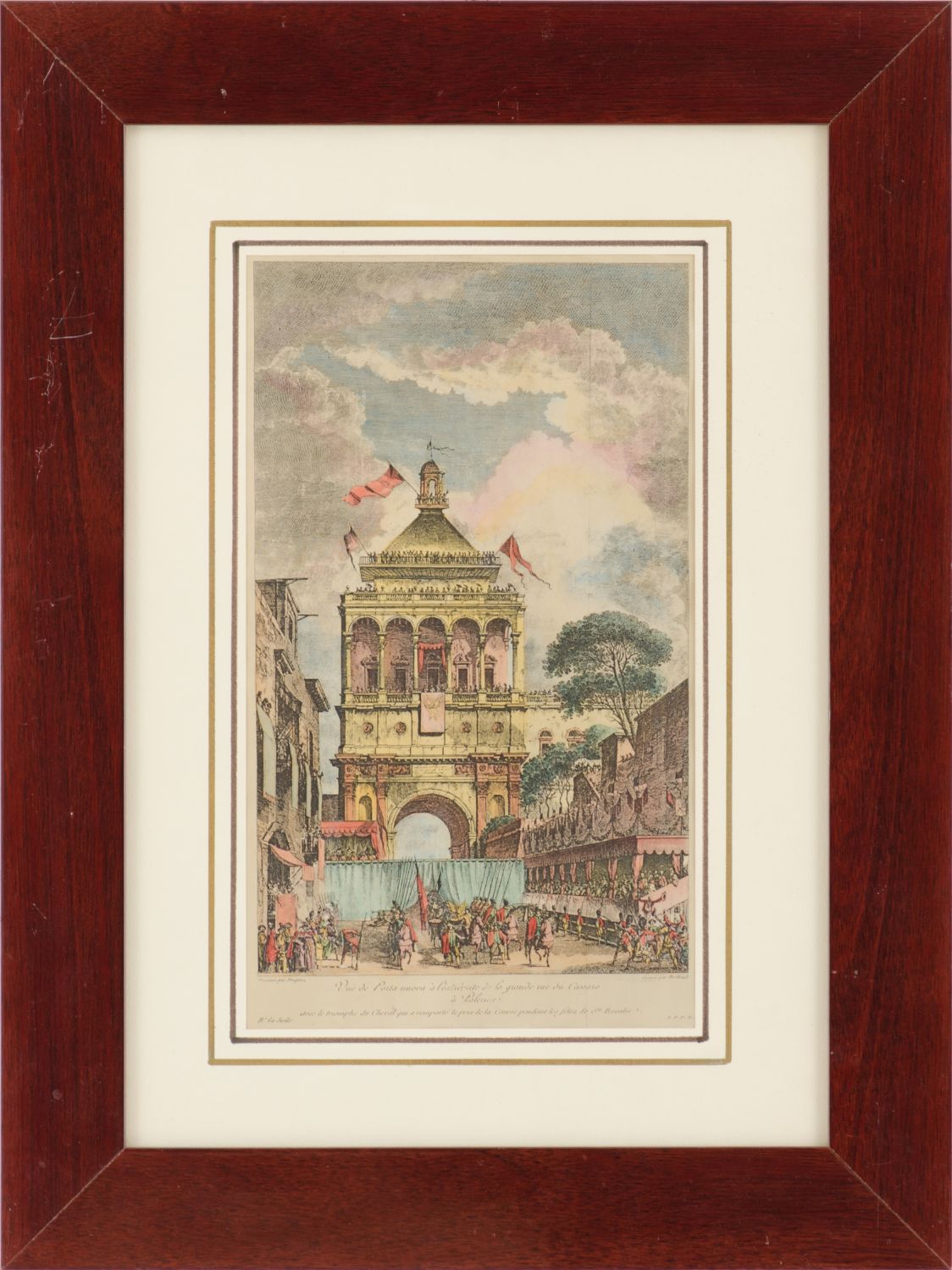 CINQUE STAMPE "Porta Nuova a Palermo", "cavaliere a cavallo con dama", Haidel...