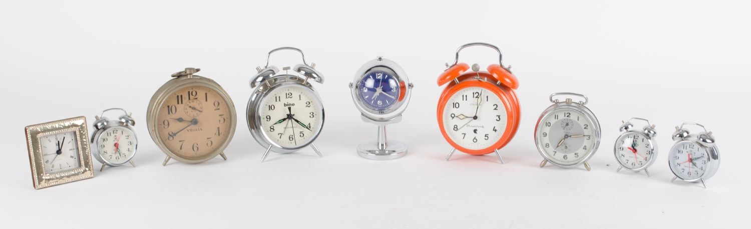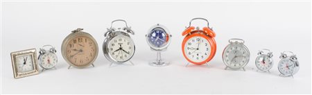 NOVE SVEGLIE in metallo (usure). XX secolo Misure: varie