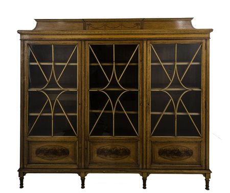 VETRINA a tre ante in radica di betulla, legno di rosa e palissandro. Francia primi ’900 Misure: cm 181 x 36 x h 165