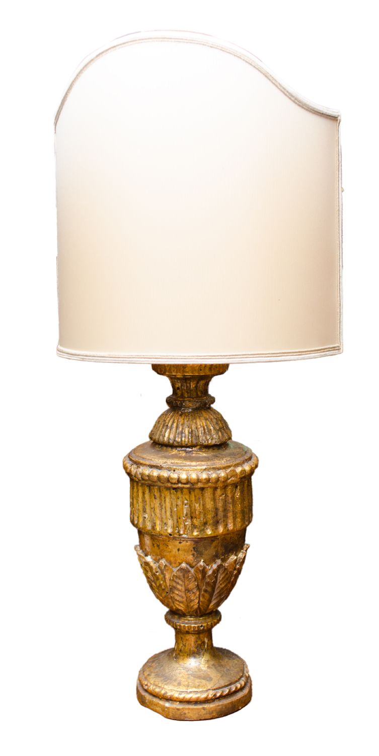 PIGNA da tavolo in legno dorato con ventola in tessuto. Sicilia fine XIX secolo