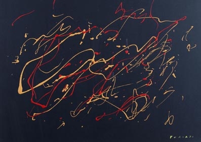 "Itinerari" metà degli anni '70 Olio su cartoncino cm. H: 36.50 L: 51.00 Firma in basso a destra. Autentica dell'autore a tergo con dedica ad personam. Autentica su foto rilasciata dall'Archivio Turcato a firma di Ettore Caruso con n. DME62629EP01AA.