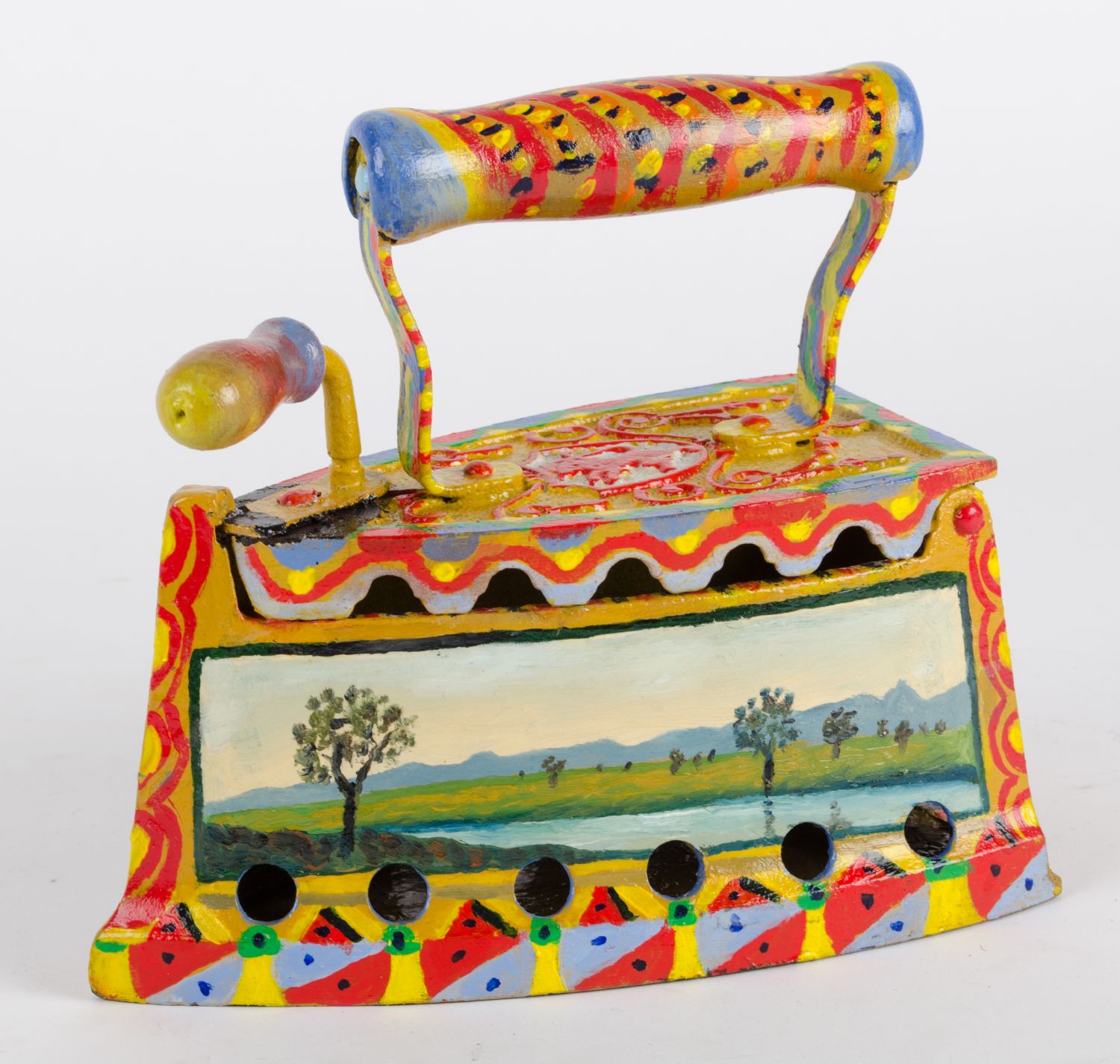 Lotto 723 | FERRO DA STIRO dipinto a mano. XX secolo Misure: cm 20,5 x 10,5 x h 19
