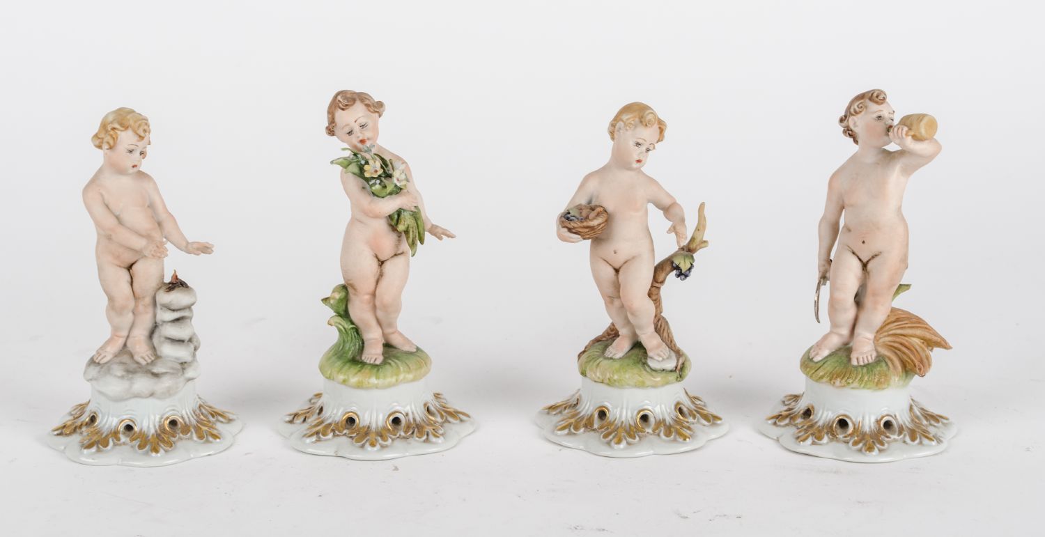 QUATTRO PUTTINI in porcellana Capodimonte raffigurante "4 stagioni". Italia XX secolo Misure: h cm 15