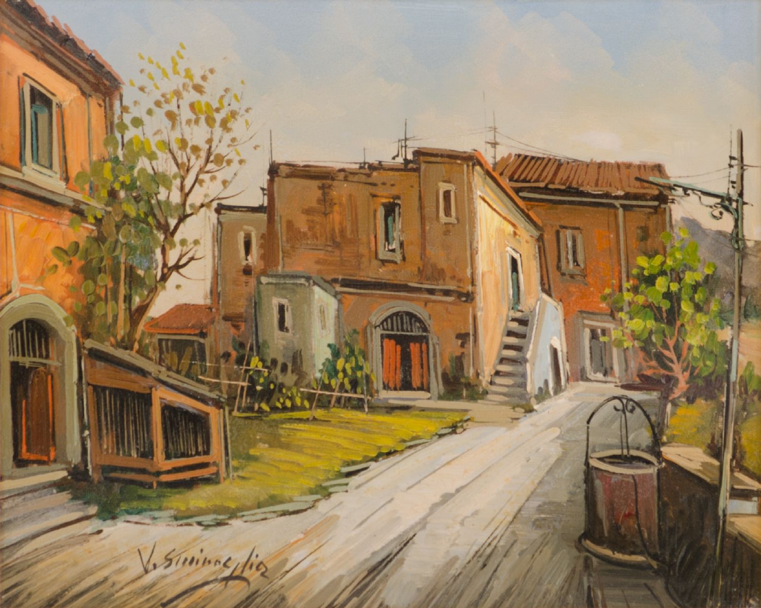 VINCENZO SMIRAGLIA OLIO su tela "scorcio di paese", firmato in basso a...