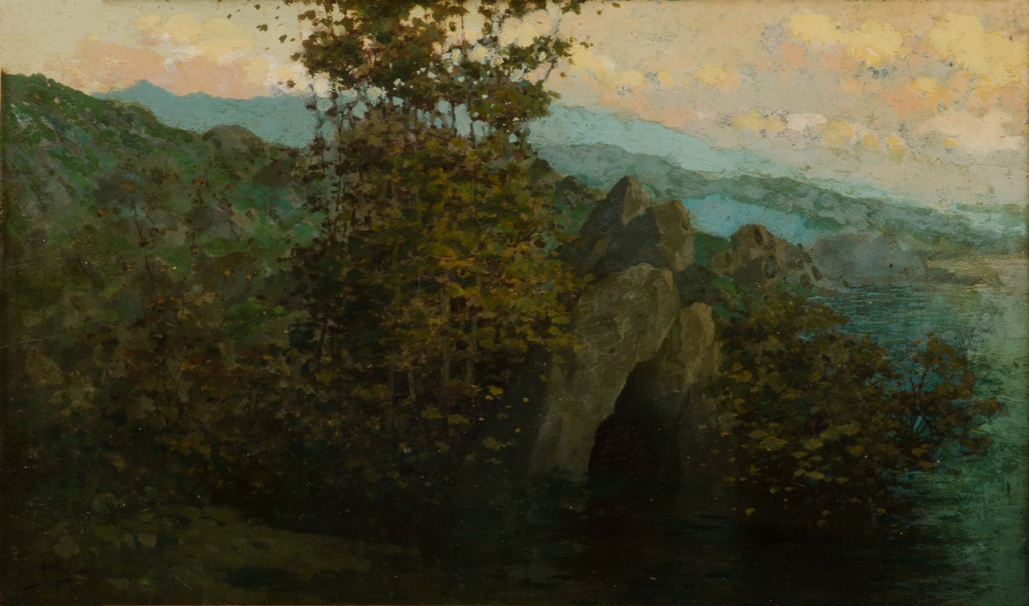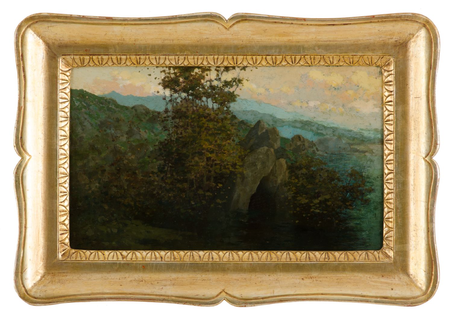 MICHELE CATTI (Palermo 1855 - 1914) OLIO su tavoletta "paesaggio" con autentica del Prof. Pedone. Misure: cm 41,5 x 24,5