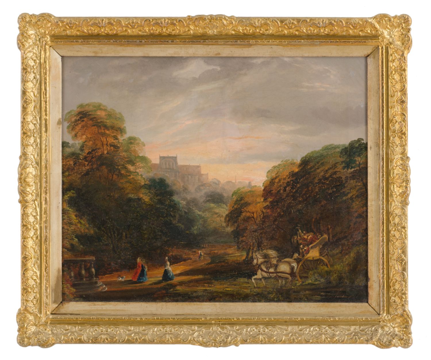 OLIO su tela "paesaggio con villa e personaggi". Inghilterra XIX secolo...