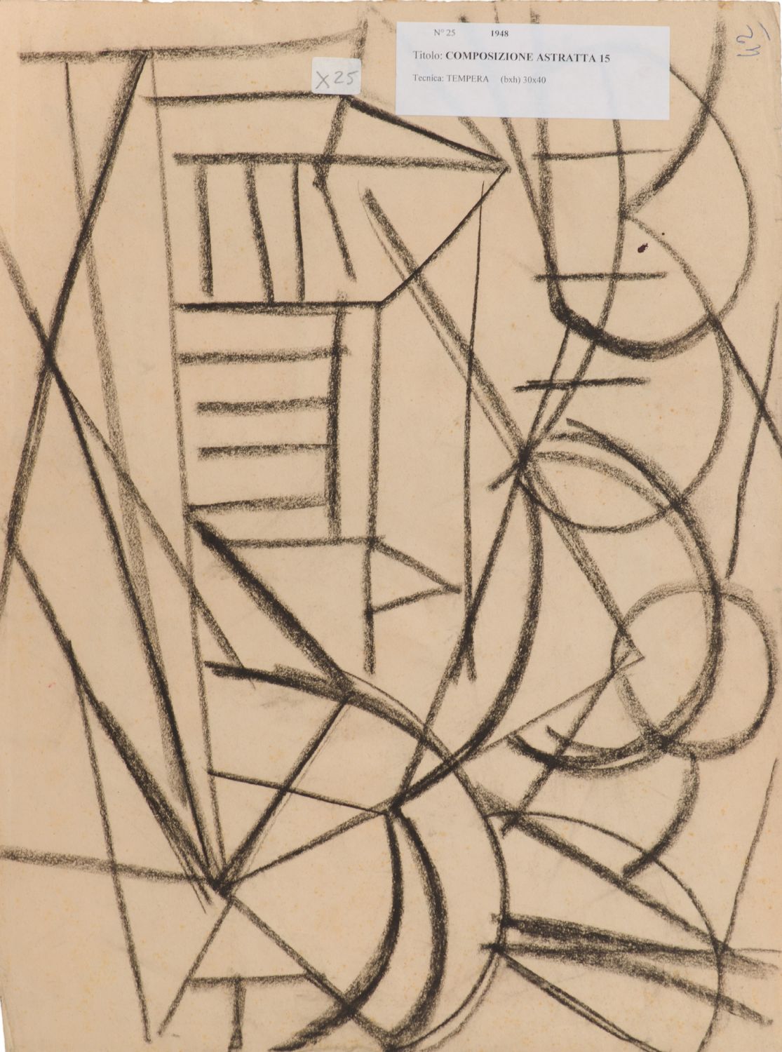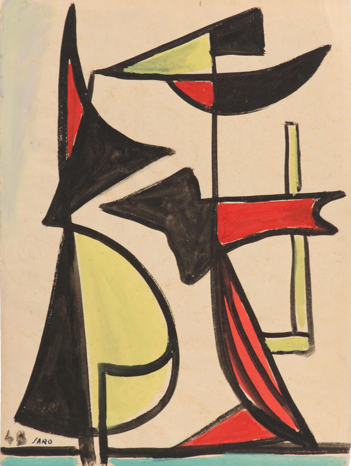 SARO MIRABELLA (Catania 1914 - Roma 1972) TEMPERA su carta "Composizione Astratta", firmata in basso a sinistra. Datato 1948 Misure: cm 30 x 40