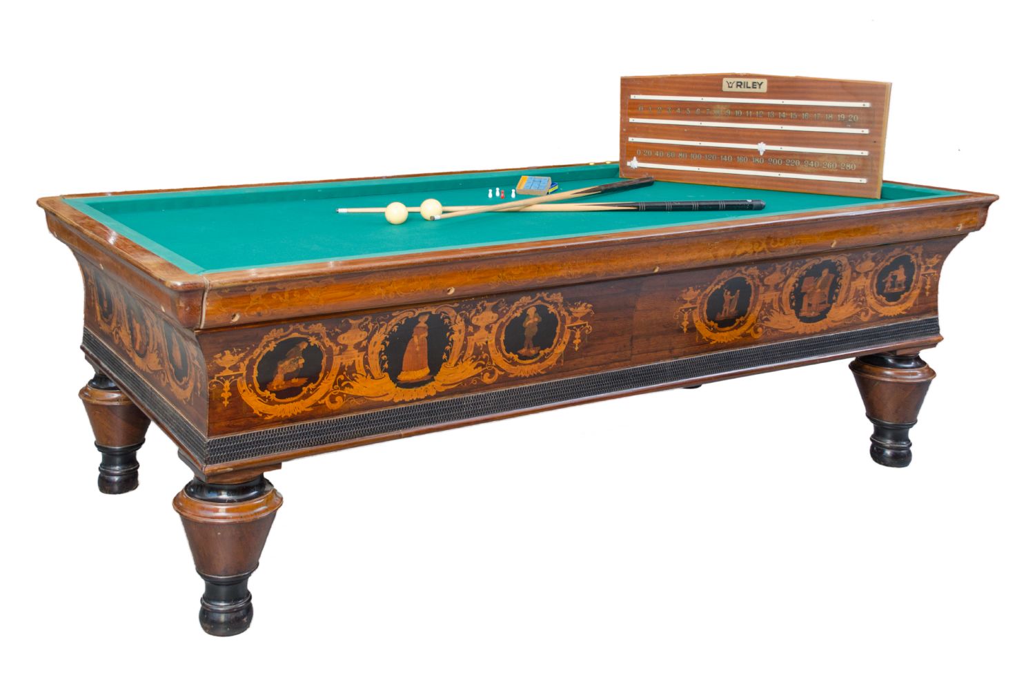 BILIARDO Carlo X in palissandro e bosso con stecche e segnapunti. Primi '800 Misure: cm 125 x 244 x h 82