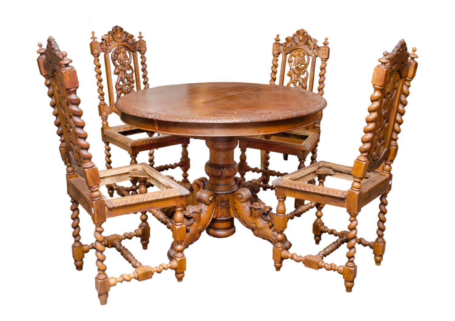 TAVOLO con 2 prolunghi e 4 SEDIE in rovere. Francia II meta' '800 Misure: cm...