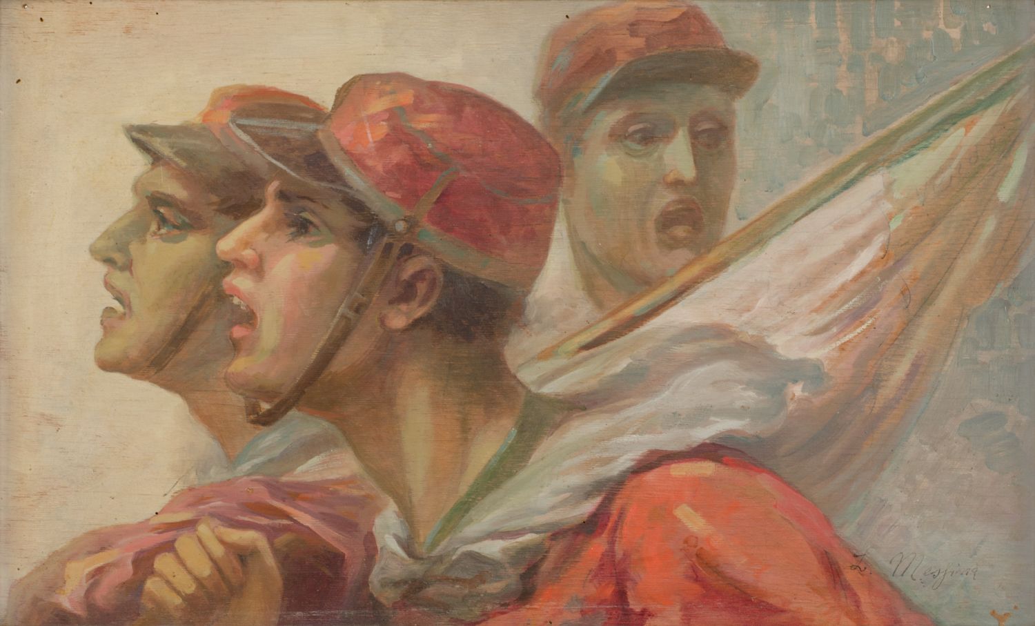L. MESSINA OLIO su tavoletta "garibaldini", firmato in basso a destra. Primi '900 Misure: cm 69 x 42