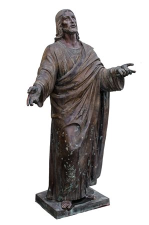 GRANDE SCULTURA in bronzo raffigurante "Cristo", fusione a cera persa. Italia XX secolo Misure: h cm 180