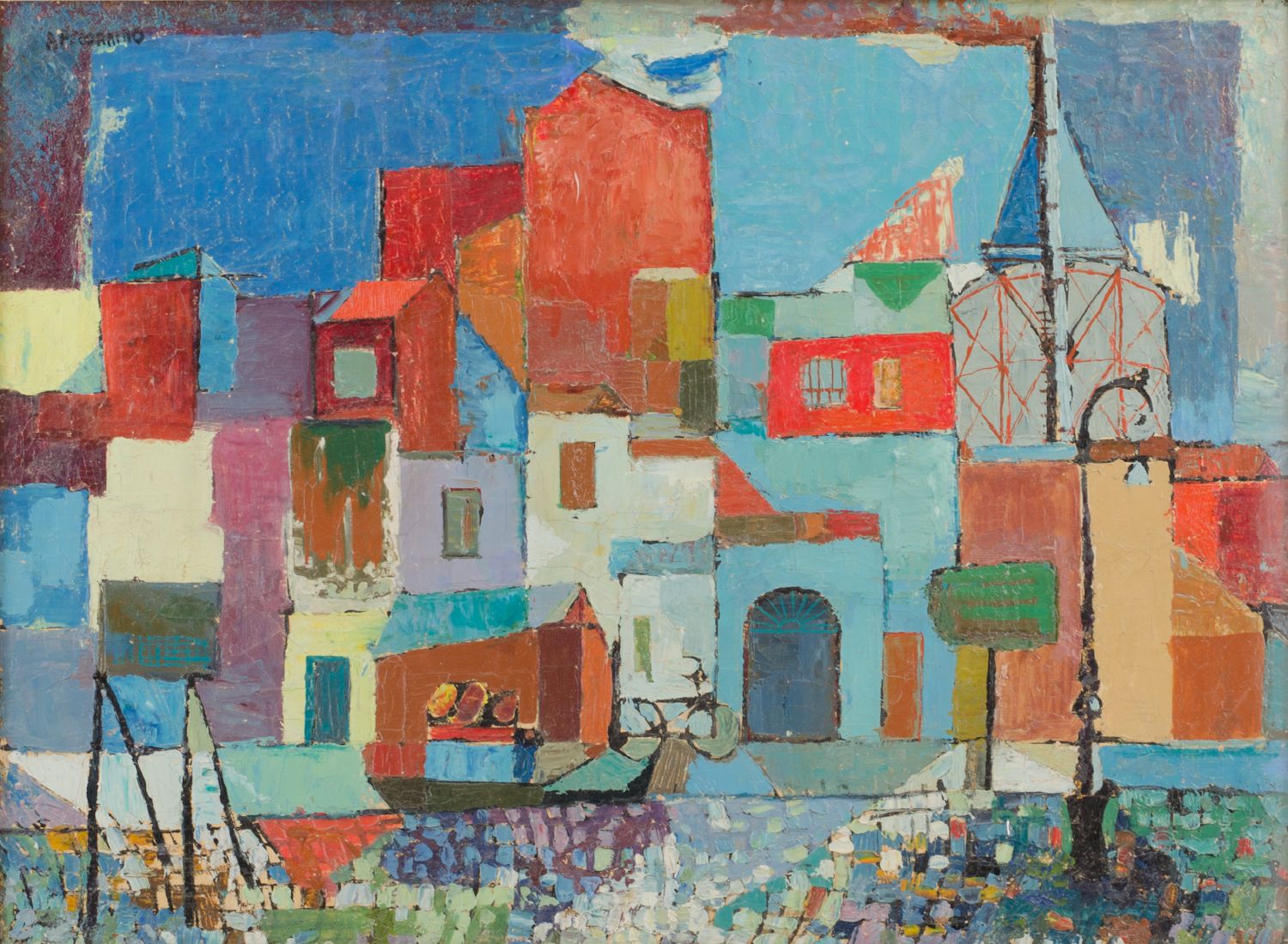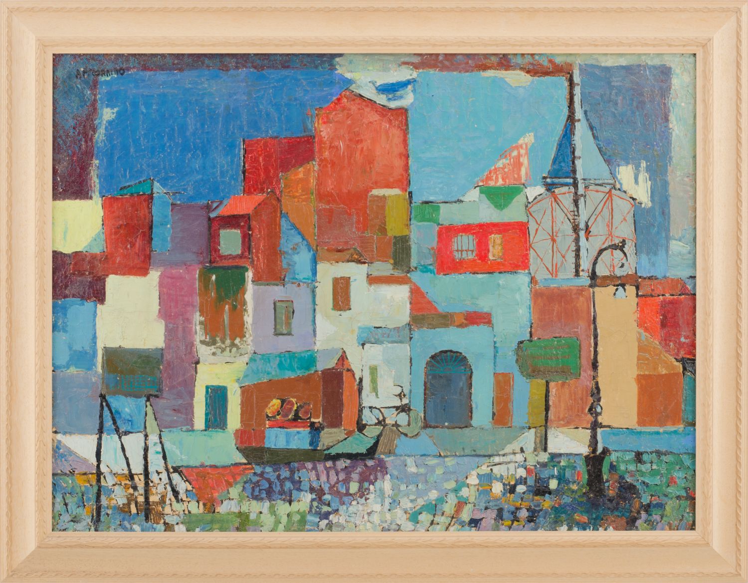 ALDO PECORAINO (1927) OLIO su tela "paesaggio urbano", firmato in basso a sinistra. Misure: cm 80 x 60
