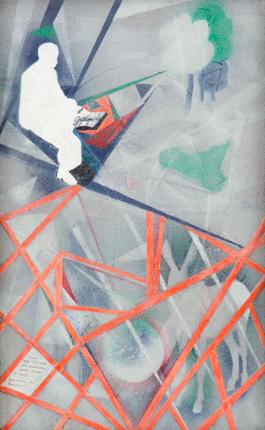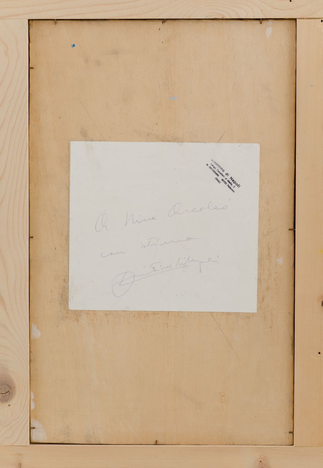 QUINTINO DI NAPOLI (1918 - 1999) TECNICA mista su tavoletta "Il Gattopardo" con dedica e timbro dell'artista sul retro, firmato sul retro. Misure: cm 30 x 48
