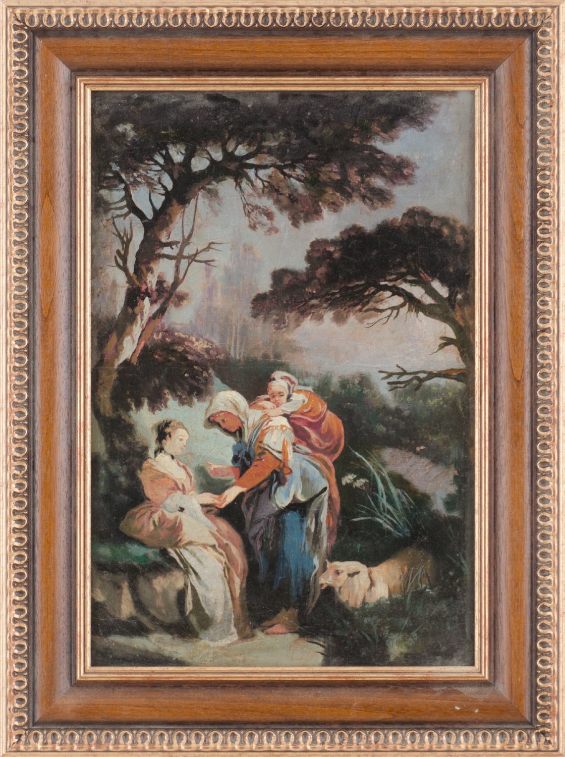 OLIO su tela "paesaggio con personaggi e pecora". Italia primi '900 Misure: cm 37 x 55