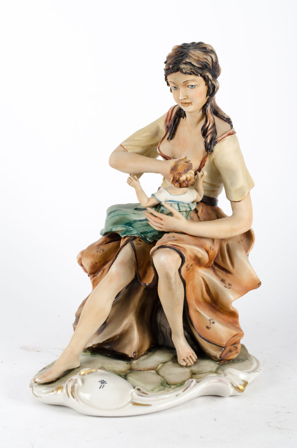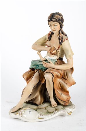 SCULTURA in porcellana Capodimonte raffigurante "maternita'". Italia XX...