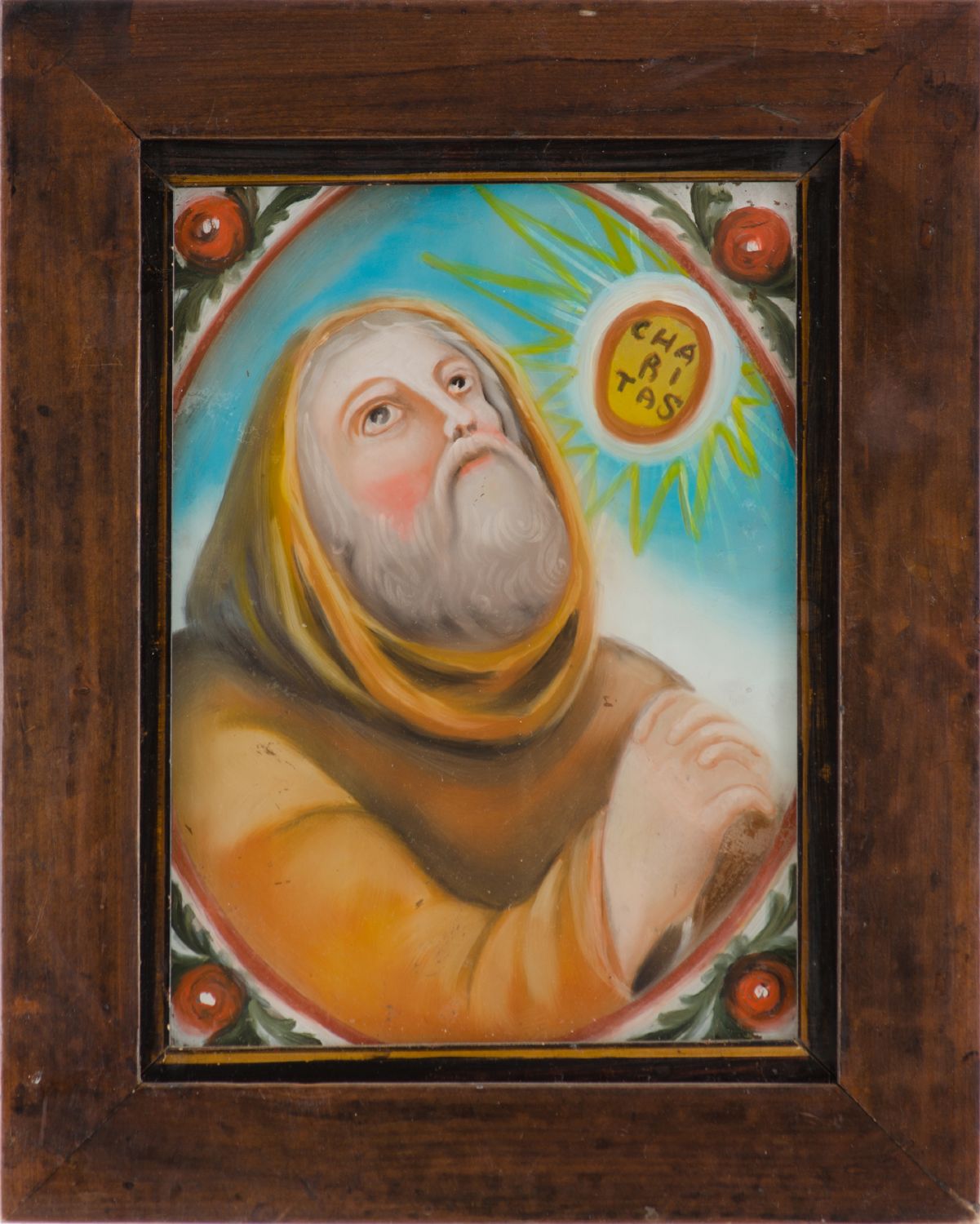 PITTURA su vetro "Santo". Sicilia XX secolo Misure: cm 20 x 27