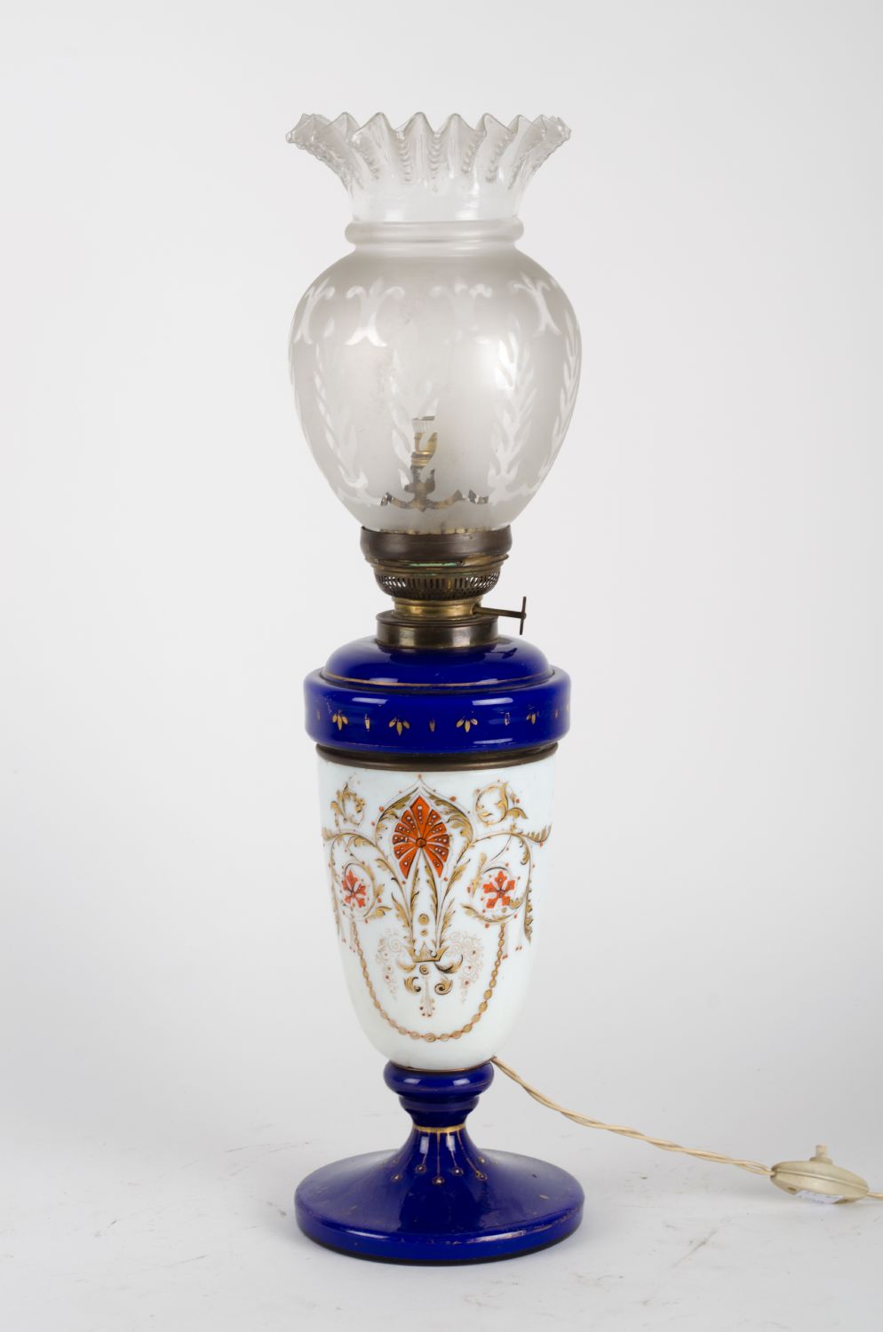 LUME in opaline nei toni del blu e del bianco (elettrificato) (rotture). Sicilia XIX secolo Misure: h cm 55,5