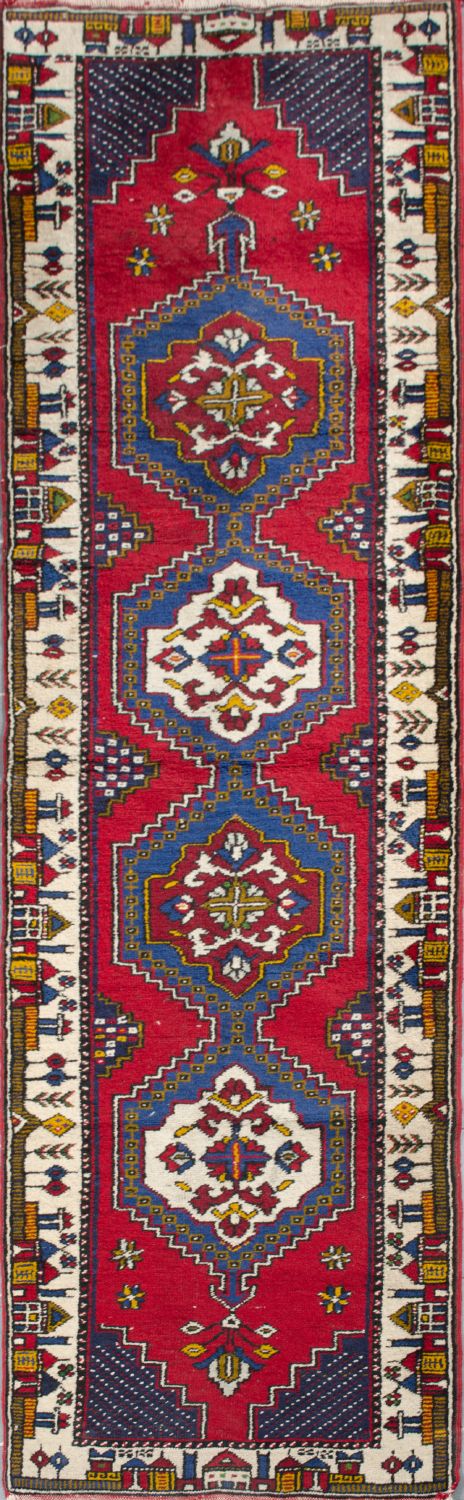 TAPPETO guida Trabzonspor, trama ordito e vello in lana. Turchia XX secolo Misure: cm 315 x 78