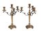 COPPIA CANDELIERI a quattro fiamme in metallo argentato. XX secolo Misure: h cm 34