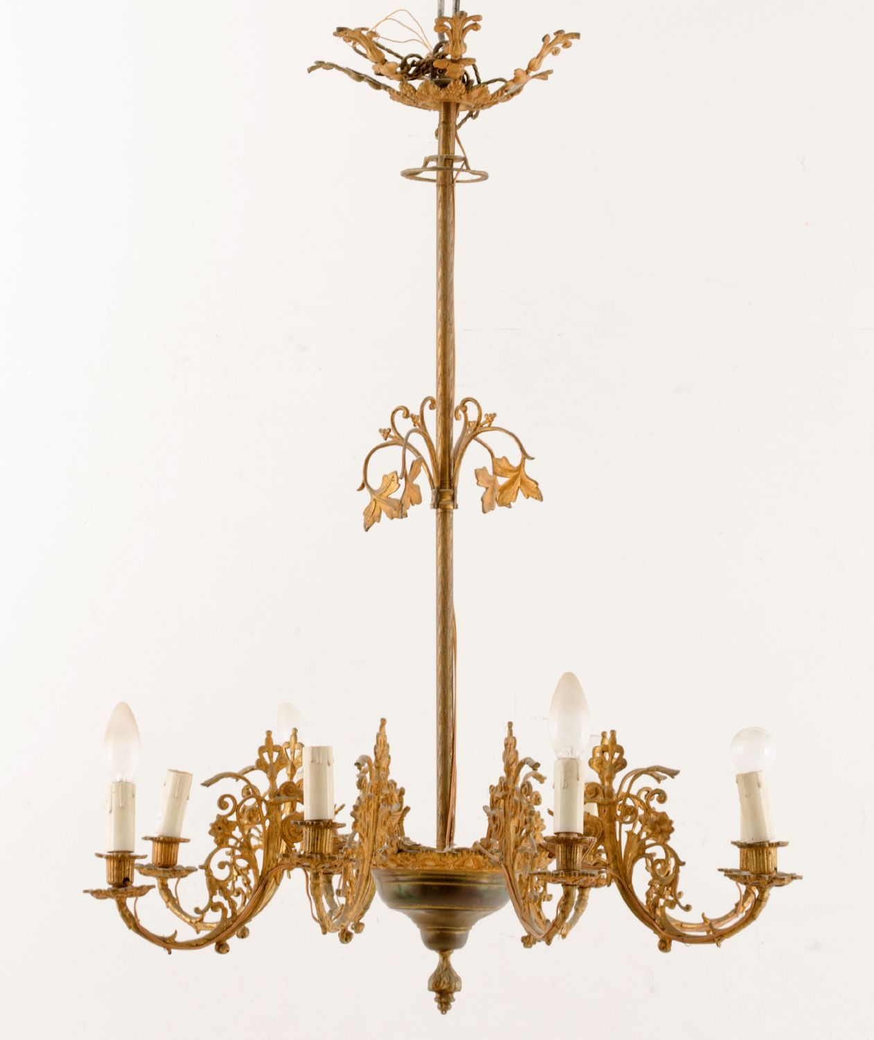 LAMPADARIO ad otto luci in bronzo dorato. Sicilia XIX secolo Misure: h cm 90