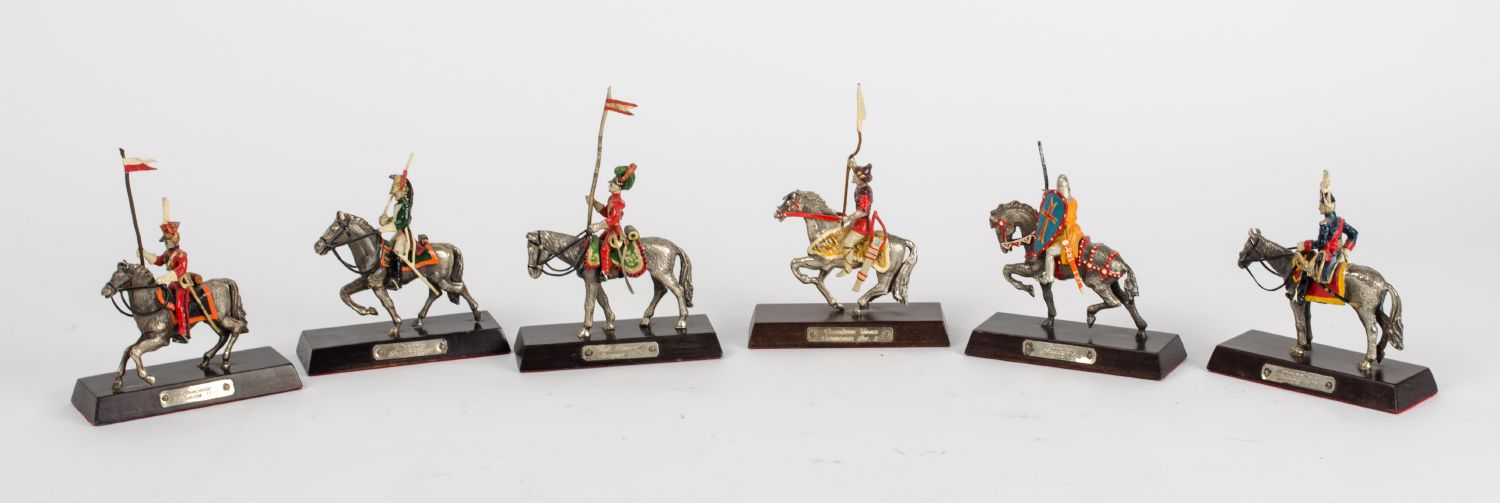 SEI SCULTURINE in piombo raffiguranti "soldati a cavallo". XX secolo Misure: h cm 11 - 15