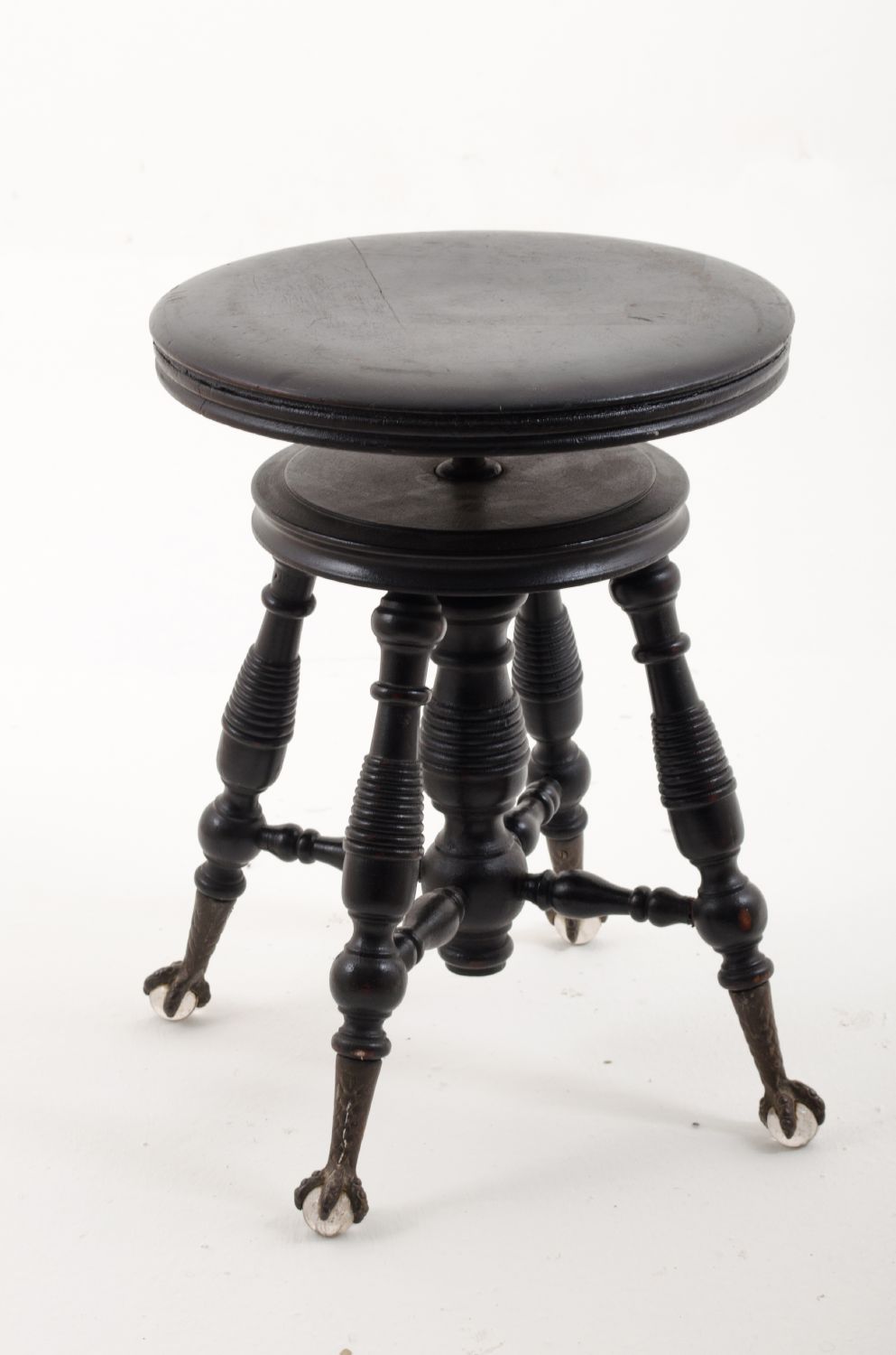 SGABELLO da pianoforte regolabile in altezza con piedi a zampa e sfere in vetro. Francia primi '900 Misure: h cm 48