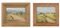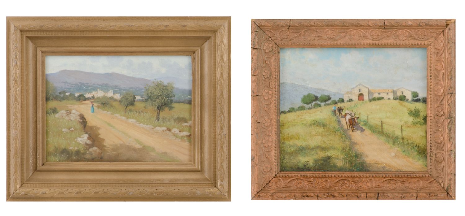 DUE OLI "paesaggi con personaggi". XX secolo Misure: cm 17 x 14