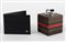 LOTTO composto da PORTAFOGLI Mont Blanc in pelle nera e da ACCENDINO Gucci da tavolo in pelle marrone e tessuto rigato. Misure: varie