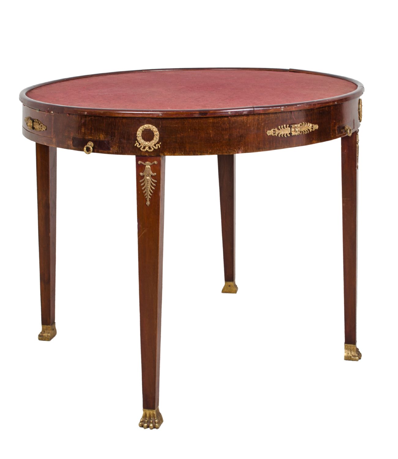 TAVOLO da gioco Impero in mogano. Sicilia fine '800 Misure: diametro cm 103 x h 80