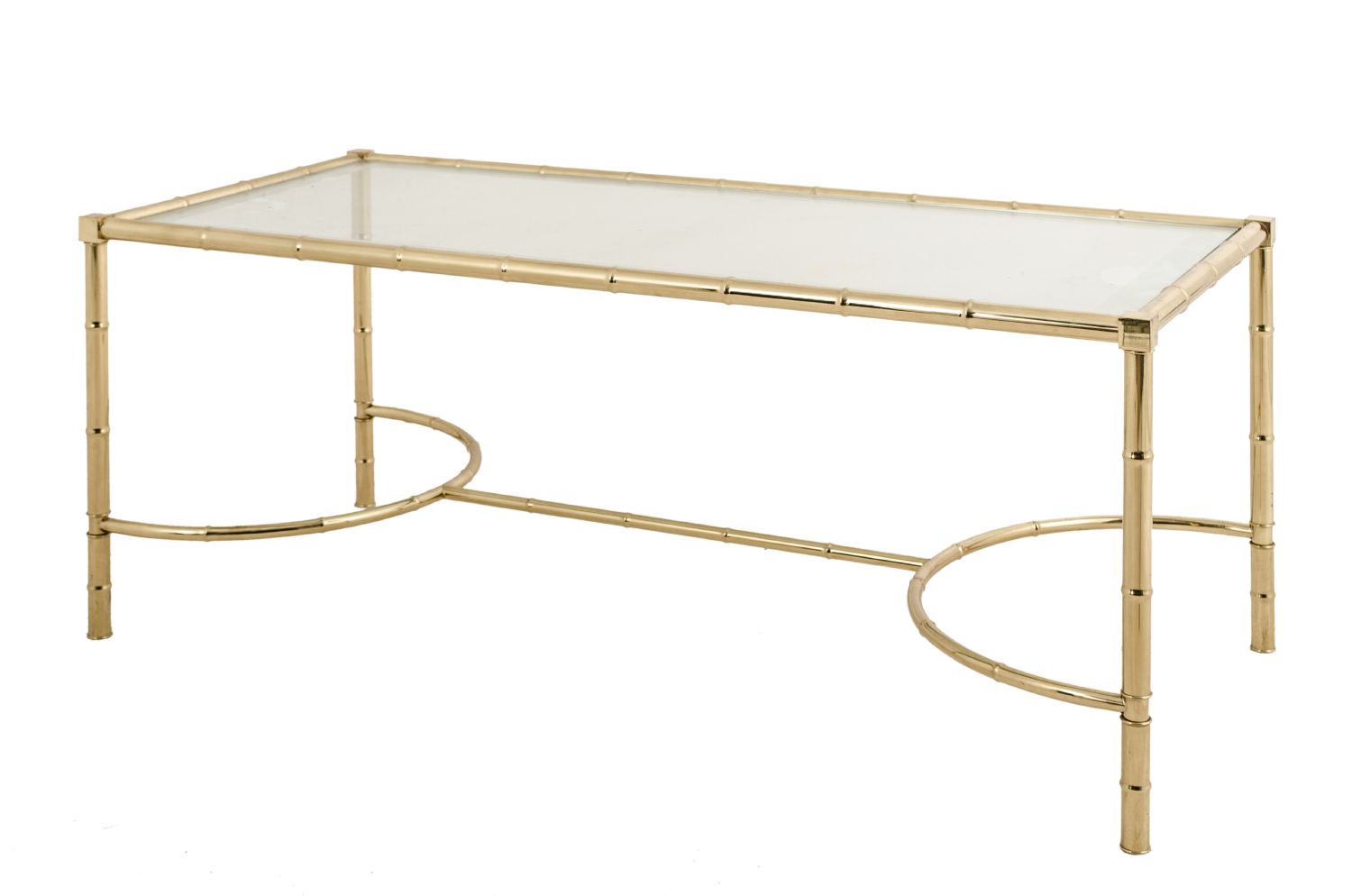 TAVOLINO da salotto in ottone dorato stile bambu' con piano in vetro. Italia...