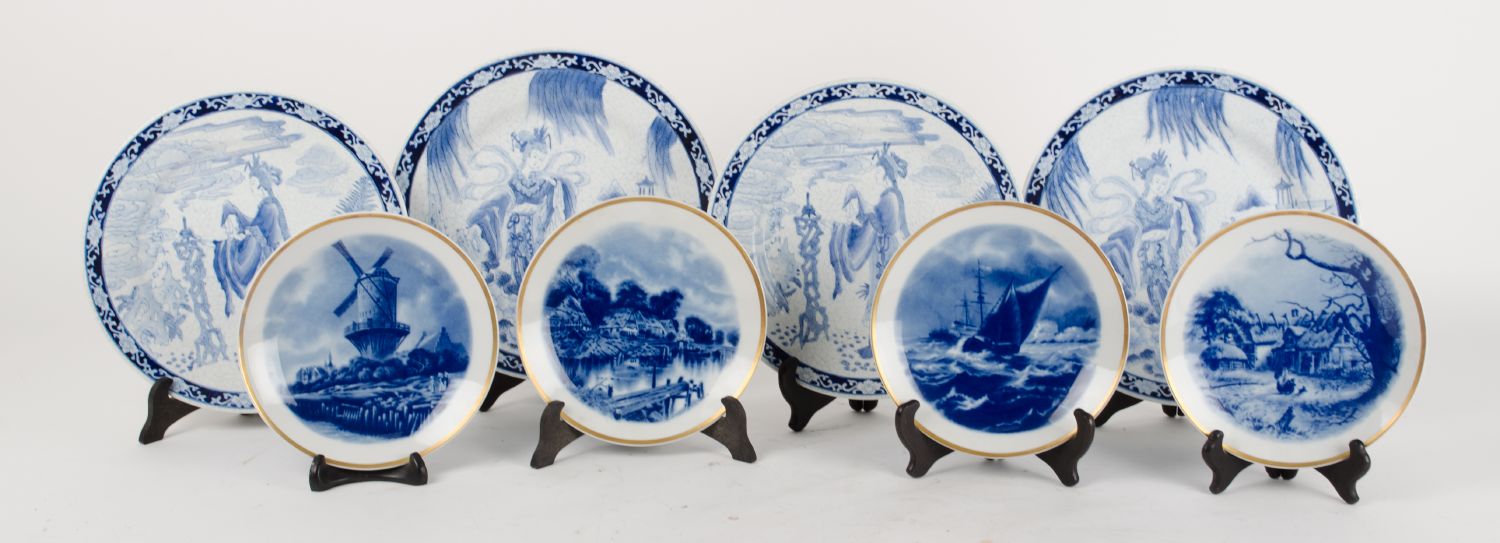 LOTTO composto da 4 PIATTI in porcellana cinese bianca dipinta raffigurante "geisha" e da 4 PIATTI in porcellana bianca stampigliata. XX secolo Misure: varie