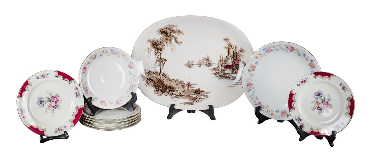 LOTTO composto da PIATTO ovale, SERVIZIO da dolce, PIATTO con sei PIATTINI e da due PIATTINI in porcellana. XX secolo Misure: varie